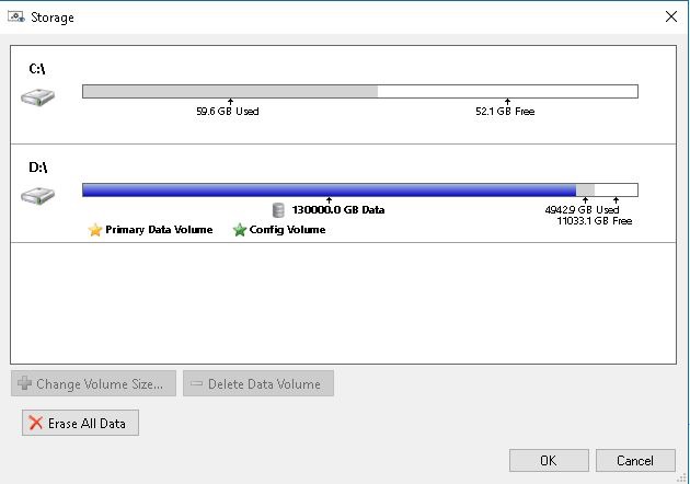 *No utilice la unidad C o la unidad del sistema operativo para estos volúmenes. Para ver qué unidades están configuradas como Volúmenes de datos primarios y secundarios y Volúmenes de configuración, use la Herramienta de administración ACC.